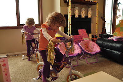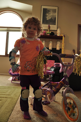 Today, we'll wrap up (pun intended) the last of the birthday pictures. We had their birthday party on a Saturday...but their birthday was actually on Tuesday. So Monday night, Lisa and I stayed up and wrapped presents and assembled their new bikes. It was truly like Christmas Eve!